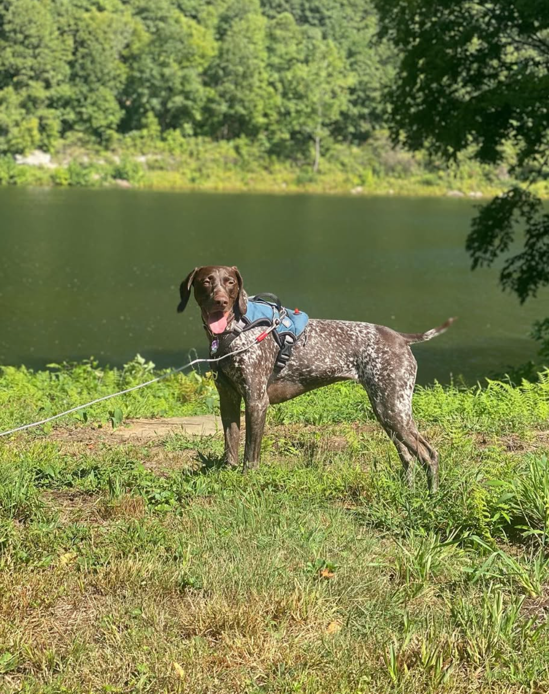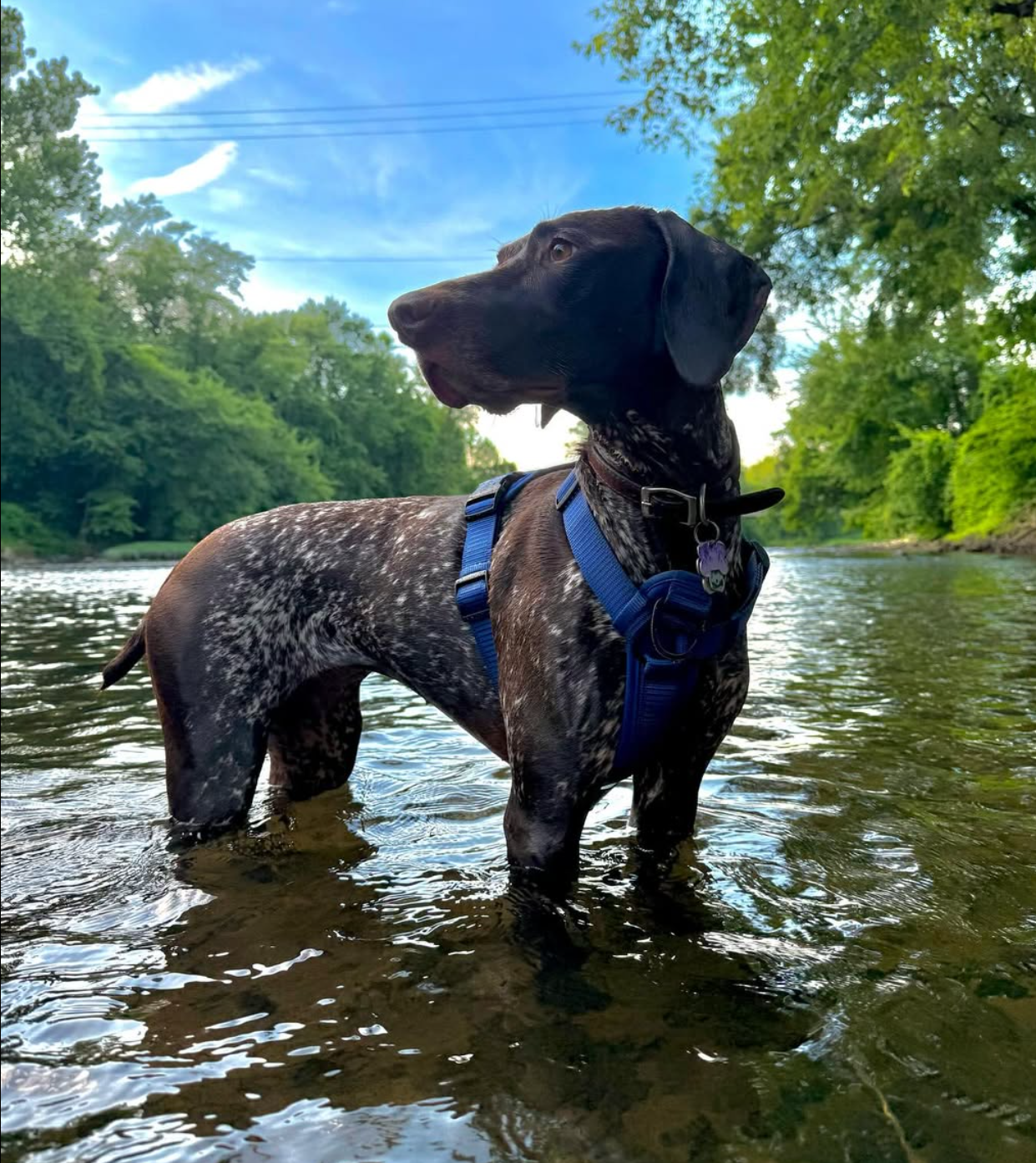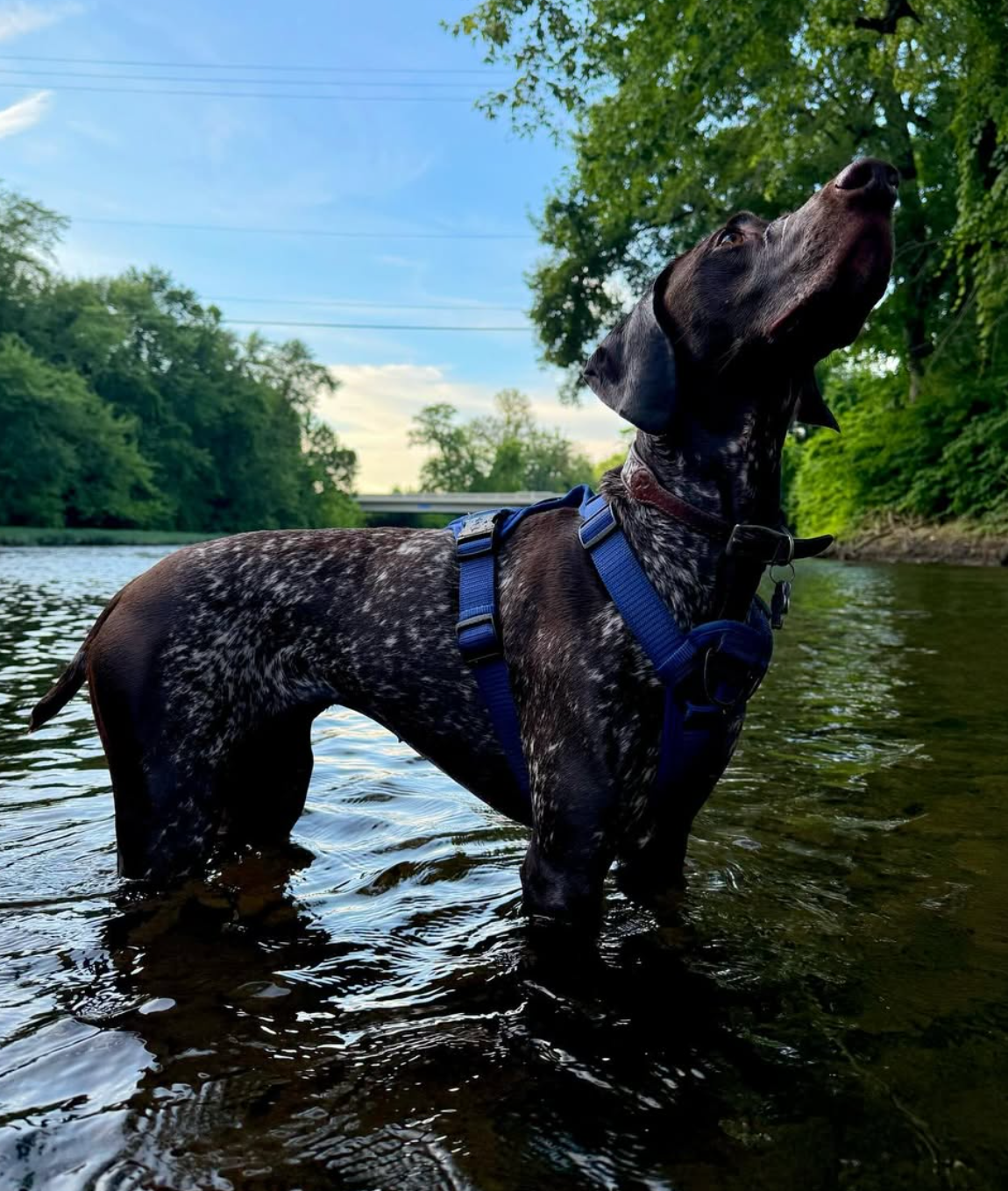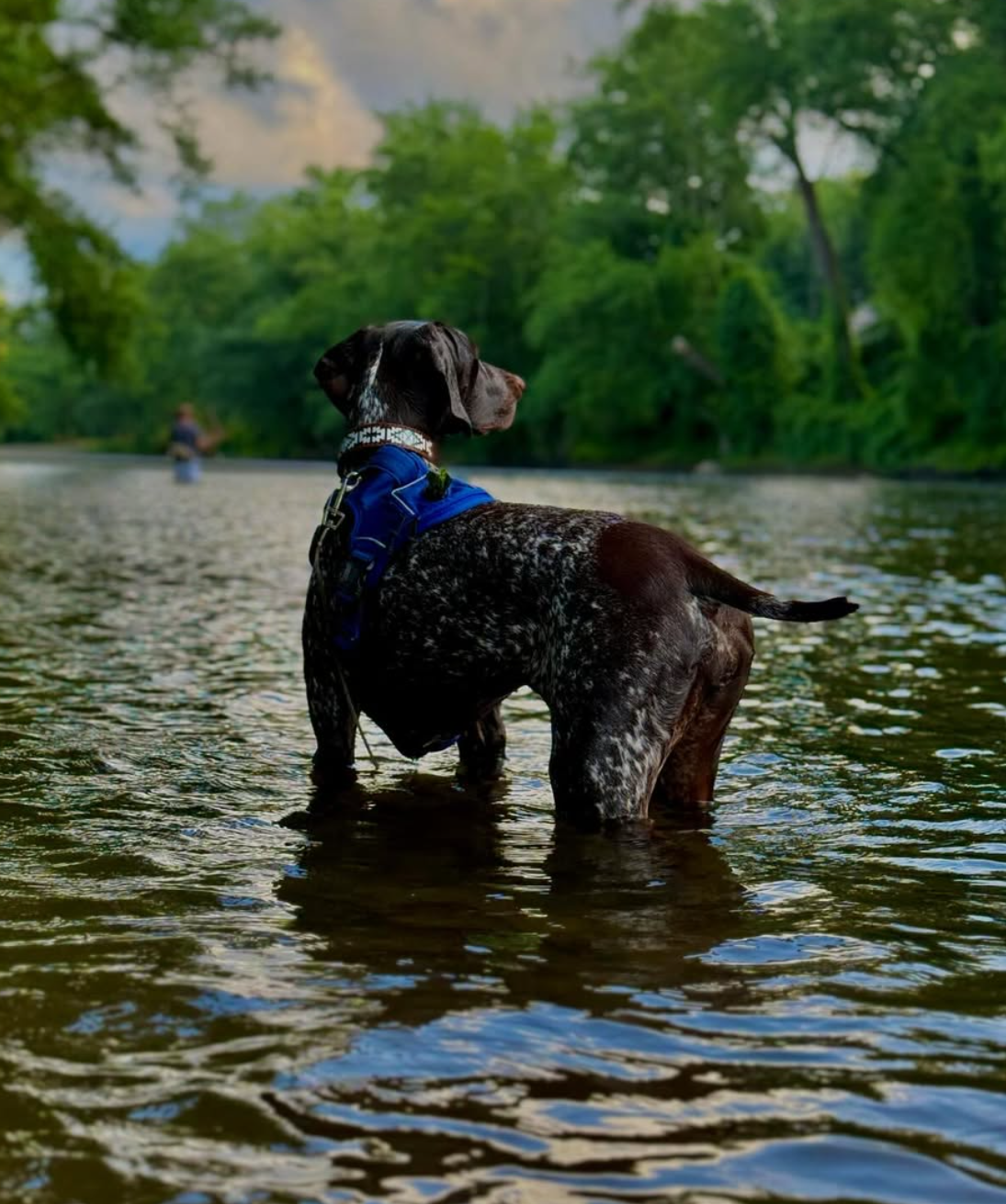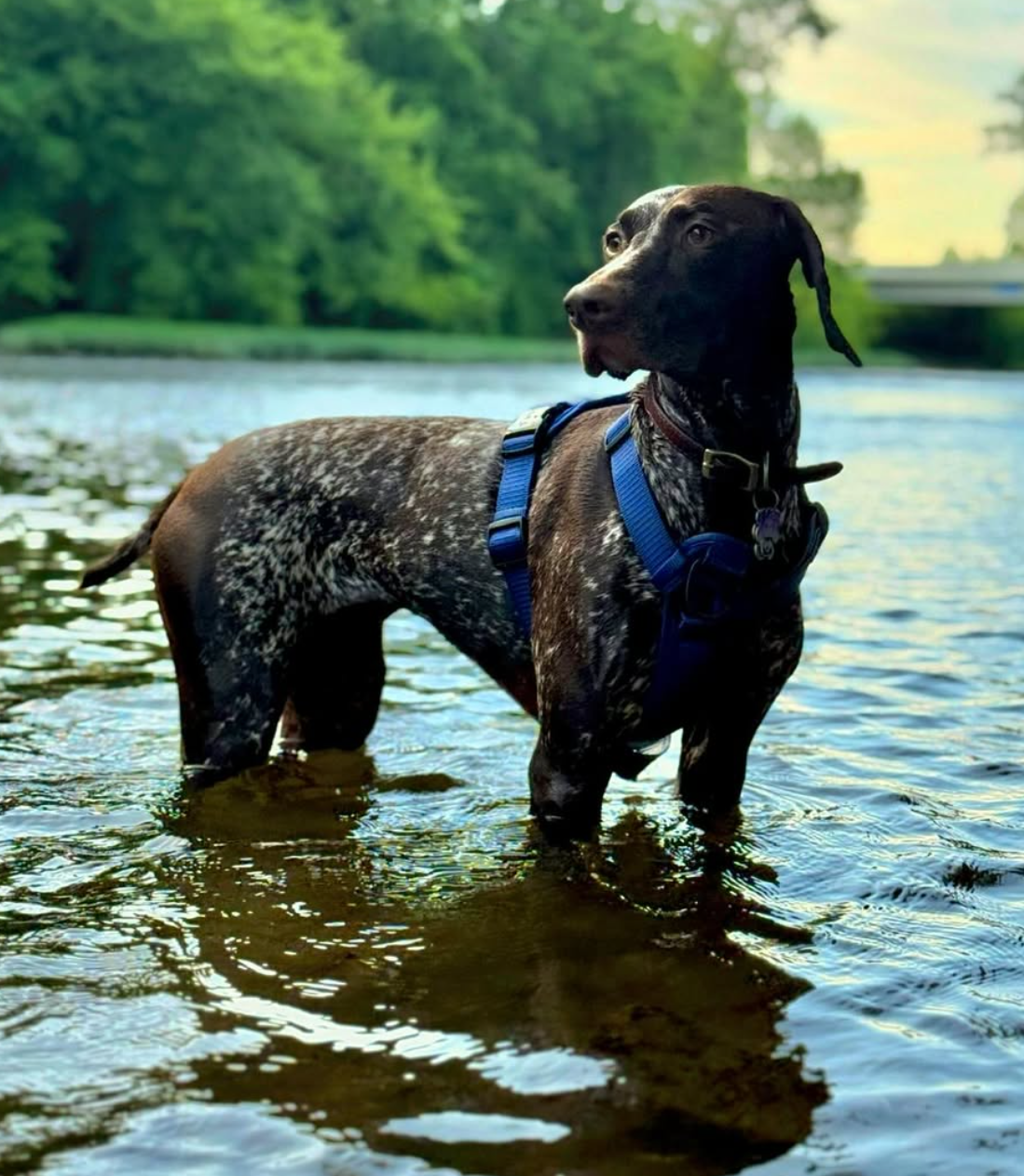 She is a dog full of light, built for joy and movement. She loves to swim, gliding through the water like it’s where she belongs most. At the park, she comes alive—running free, nose to the wind, ears flying, living for every second outdoors. As a true GSP, Nova is an excellent bird dog, naturally focused and eager to work, yet gentle and affectionate when it’s time to rest.